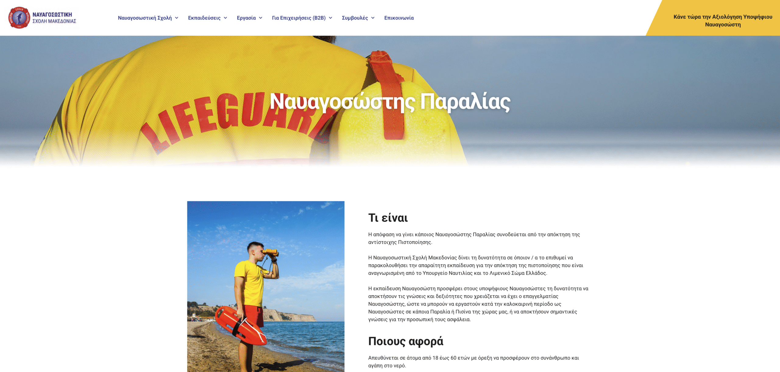 For Macedonia Lifeguard School, one of the leading educational institutions in the field of lifeguard training in Greece, we implement a complete digital strategy focusing on SEO, increasing organic traffic, and optimizing conversions. We provide continuous SEO Optimization, targeted content based on high-intent keywords, and technical SEO to enhance lifeguard.gr’s visibility nationwide. Additionally, we design and manage Meta Ads campaigns focused on attracting prospective students and strengthening brand authority. With a combination of performance marketing, social media management, and strategic optimization, we contribute to the digital growth and continuous increase of school enrollments.