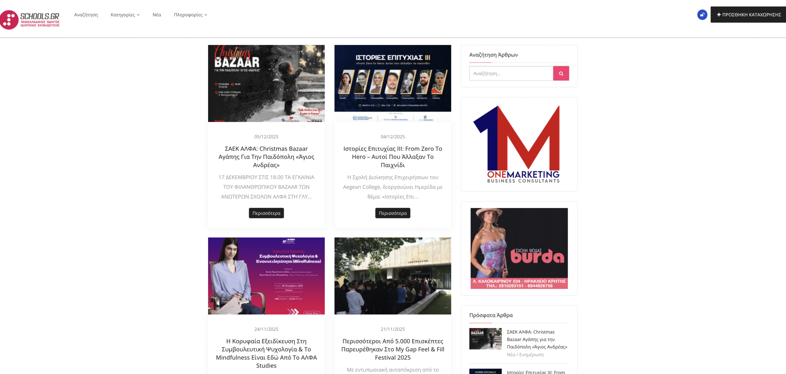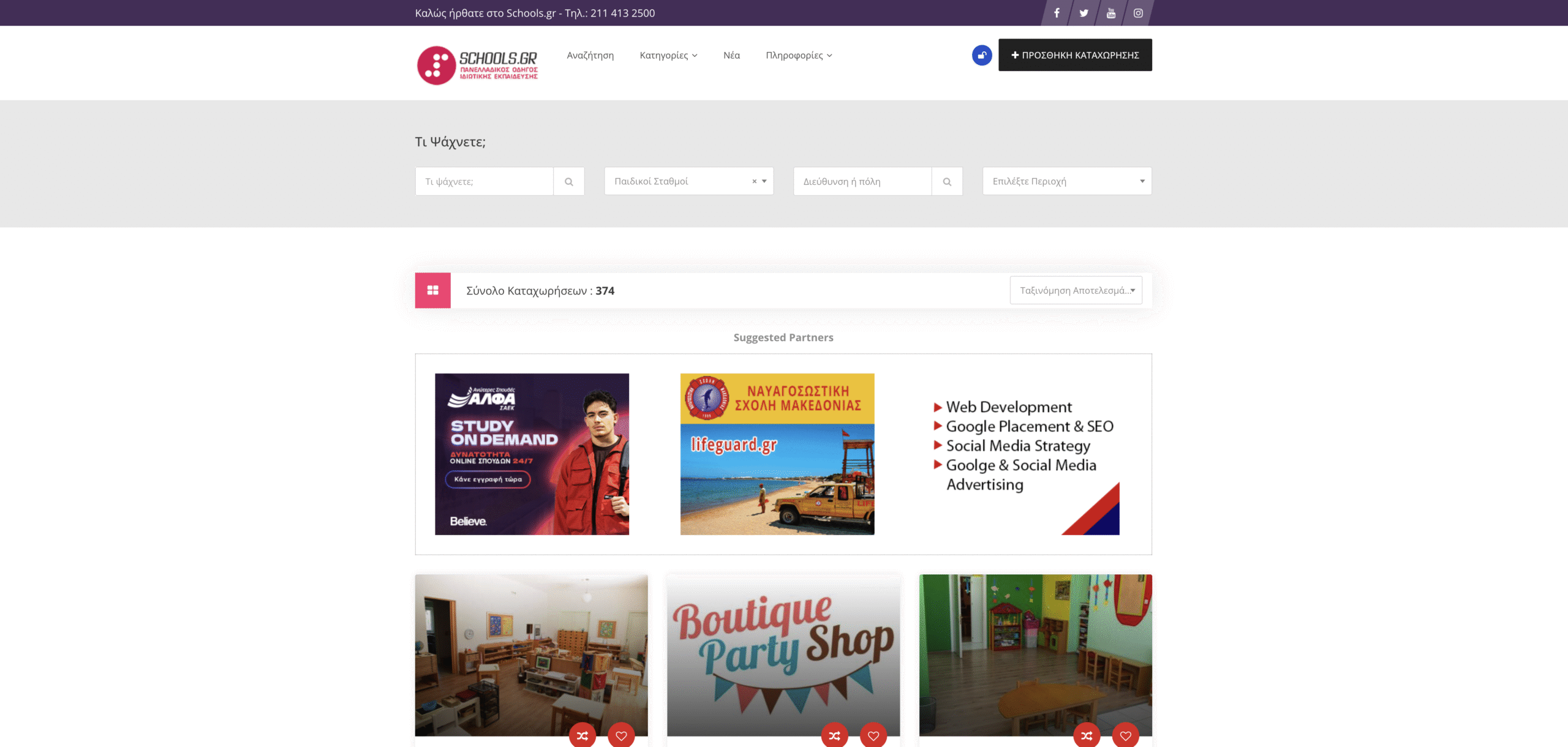 For Schools.gr, one of the most complete educational directories in Greece, we implemented full development and upgrade of the website aiming for technical perfection, speed optimization, and enhancement of organic ranking. We provide continuous SEO Optimization, keyword research, on-page and technical SEO, as well as strategic social media management to increase engagement and traffic. At the same time, we design and manage targeted Meta Ads and Google Ads campaigns, ensuring high ROI and continuous increase of conversions. With a complete digital marketing strategy, we contribute to strengthening the online presence and stable growth of Schools.gr.